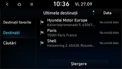 Apăsați Ștergere pentru a șterge destinațiile anterioare. Selectați elementul dorit, apoi apăsați Ștergere.