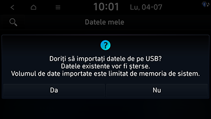 Volumul de date disponibile pentru importul pe un dispozitiv USB este limitat în funcție de numărul de elemente suportate de sistemul de navigație.
