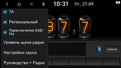 ] > Настройки звука на экране радио. Дополнительные сведения см. в разделе «Звук».