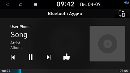 Нажмите MEDIA на головном блоке. Откроется экран Bluetooth-аудио.