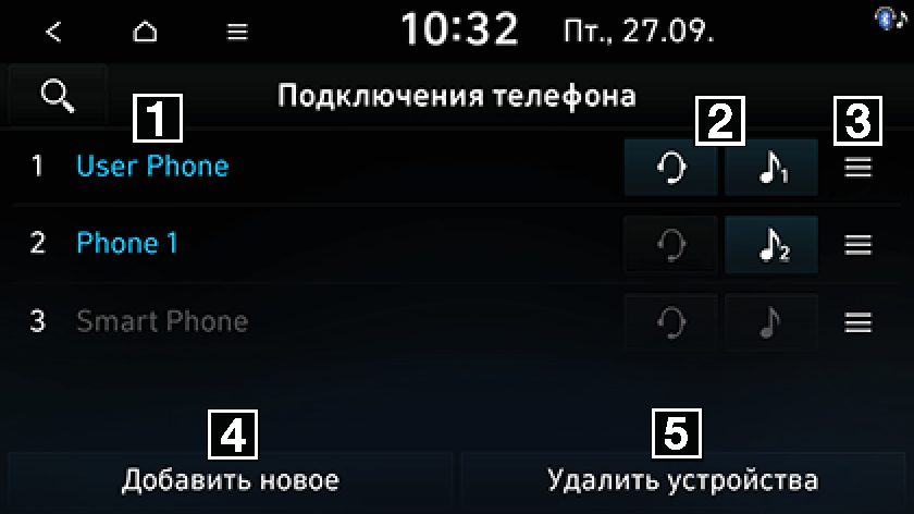 Это меню используется для подключения и сопряжения головного блока и телефона с поддержкой Bluetooth.