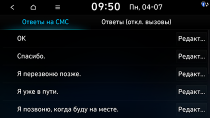 Необходимое сообщение можно выбрать в меню Ответы на СМС или Ответы (откл. вызовы).