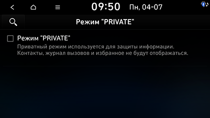 Можно установить приватный режим для защиты личной информации. При активном приватном режиме контакты, история вызовов, избранное и сообщения не отображаются.