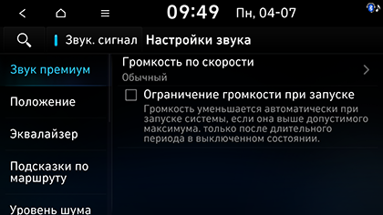 Громкость по скорости: уровень громкости автоматически подстраивается под скорость движения автомобиля.