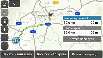 Выберите требуемый маршрут и нажмите Начать навиг.. Ведение по маршруту запускается с учетом параметров маршрута.