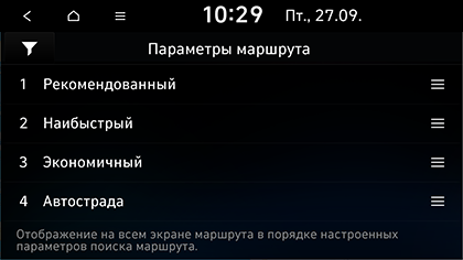 Вы можете изменить различные параметры маршрута в соответствии со своими потребностями. Убедитесь, что система подключена к сети. Параметры маршрута доступны только при наличии заданного места назначения.