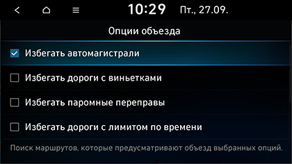 Нажмите Опции объезда. Установите или снимите флажки для требуемых параметров исключений и нажмите [
