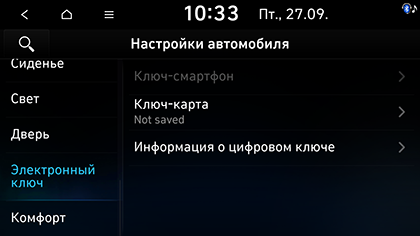 1. Нажмите SETUP > Автомобиль > Электронный ключ.