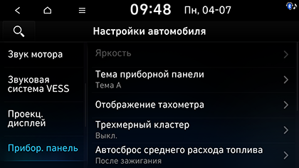 • Тема приборной панели: выбор темы оформления панели приборов.