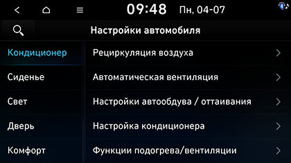 1. Нажмите SETUP > Автомобиль > Кондиционер.