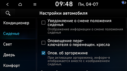 • Уведомление о смене положения сиденья: отображает информацию об изменении положения сиденья.