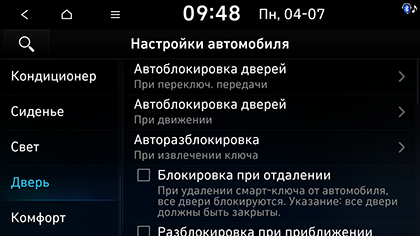 1. Нажмите SETUP > Автомобиль > Дверь.