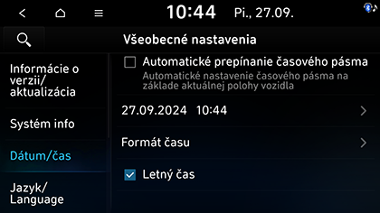 Automatické prepínanie časového pásma (ak je vo výbave): Nastaví čas automaticky na základe aktuálnej polohy vozidla.