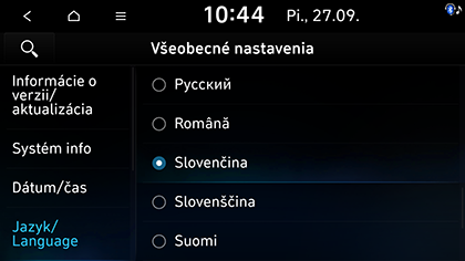 Stlačte tlačidlo SETUP > Všeobecné > Jazyk/ Language.