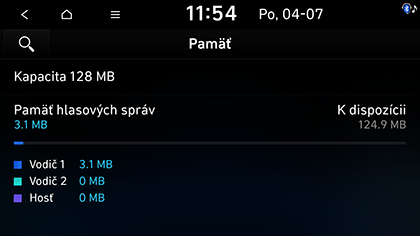 Môžete zobraziť priestor pamäte na hlasové poznámky (celkový ukladací priestor, použitý pamäťový priestor, zostávajúci pamäťový priestor).