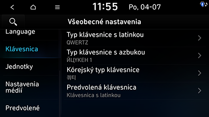 Stlačte tlačidlo SETUP > Všeobecné > Klávesnica.