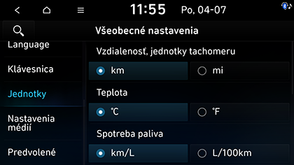 Táto ponuka slúži na konfiguráciu jednotiek používaných v systéme.