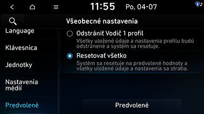 Môžete obnoviť aktuálny profil alebo celý systém. Zvoľte požadovanú položku a stlačte tlačidlo Predvolené > Áno.