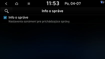 Stlačte tlačidlo SETUP > Pripojenie zariadenia > Upozornenie na správu. Označením tohto políčka zobrazíte kontextové okná upozornení na prijaté správy.