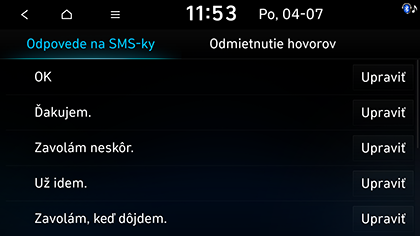 Požadovanú správu môžete vybrať v položke Odpovede na SMS-ky alebo Odmietnutie hovorov.