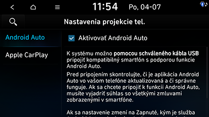V tejto ponuke je možné zaškrtnutím aktivovať funkcie Android Auto a Apple CarPlay.