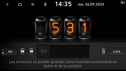 Pulse DAB/FM o FM para cambiar la banda a radio AM, si esta está establecida en DAB (si existe)/FM. Se muestra la última emisora escuchada.