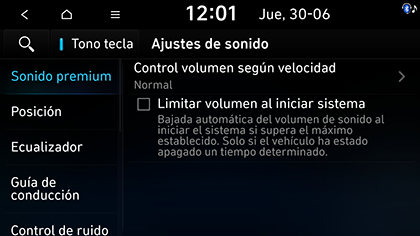 Control volumen según velocidad: ajusta automáticamente el volumen del audio según la velocidad del vehículo.