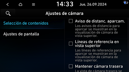 Selección de contenidos: ajusta la opción de visualización de las guías de aparcamiento.