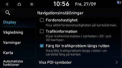 Visa POI-symboler: Ställer in närliggande POI som ska visas på kartan.