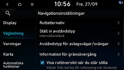 Avståndstyp för avtagsvägar/svängar: Ställer in vägledningsalternativet baserat på plats.