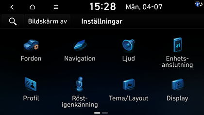 Du kan ställa in alla inställningar i systemet. Tryck på SETUP på huvudenheten.