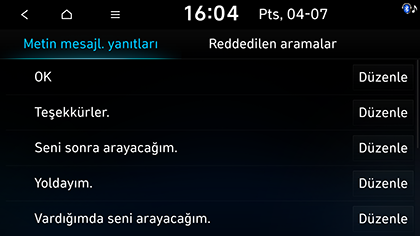 İstenen mesajı Metin mesajları yanıtları veya Reddedilen arama yanıtları sekmelerinde seçebilirsiniz.