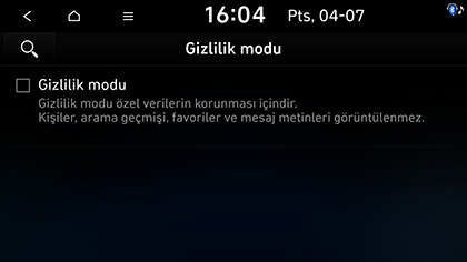 Kişisel verileri korumak için gizlilik modunu ayarlayabilirsiniz. Gizlilik modu etkinleştirildiğinde kişiler, arama geçmişi, sık kullanılanlar ve mesajlar görüntülenmez.