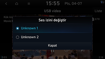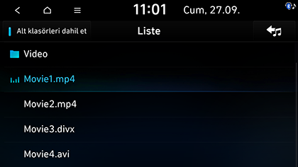 • Farklı bir kaynak çalarken USB Video çalmak için [] > Medya kaynakları > USB video veya direksiyondaki MODE düğmesi ile geçiş yapın.