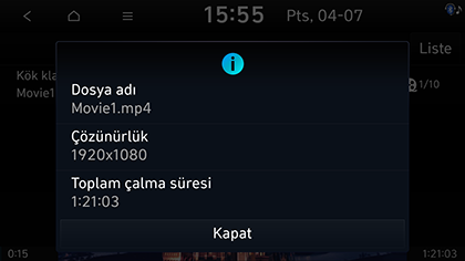 Bu özellik dosyanın isim, çözünürlük ve oynatma süresi bilgisini gösterir.