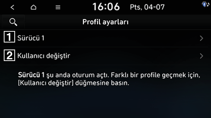 Driver1, Driver2, Guest profilini sil: Geçerli sürücü profilini siler.