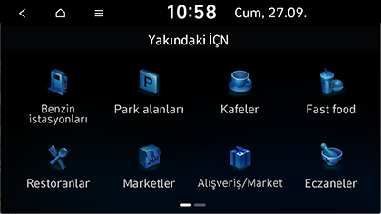 Varış yeri: Geçerli varış noktasına yakın POI'leri arar. Yalnızca varış noktası ayarlıysa kullanılabilir.