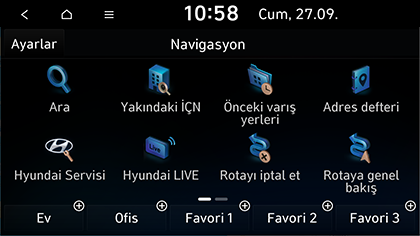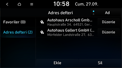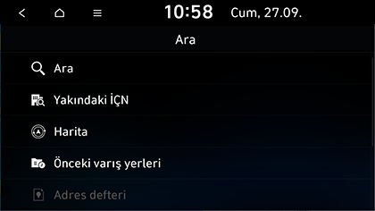 Varış noktasını Adres defteri menüsünde kayıtlı bir konumdan seçebilirsiniz. Bu özelliği daha etkin kullanabilmek için, sıkça gittiğiniz varış noktalarının önceden kaydedilmesi gerekir.