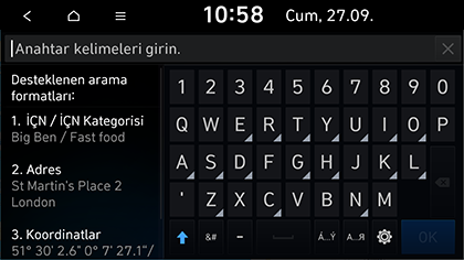 POI, POI kategorisi, adres, koordinatlar gibi bir anahtar sözcükler girip OK üzerine basın.