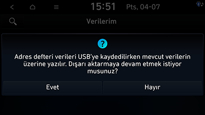 Bu işlev, adres defterini bir USB bellek aygıtına aktarmak için kullanılır.