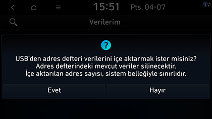 Bu işlev, adres defterini bir USB bellek aygıtından içe aktarmak için kullanılır.