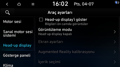 İçerik seçimi: Baş üstü göstergesinin içeriğini ayarlayabilirsiniz.