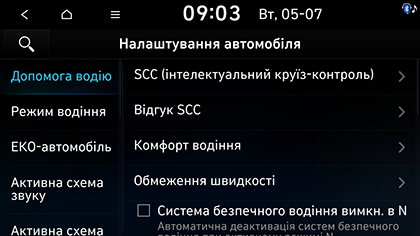 Натисніть SETUP > Автомобіль > Допомога водію.