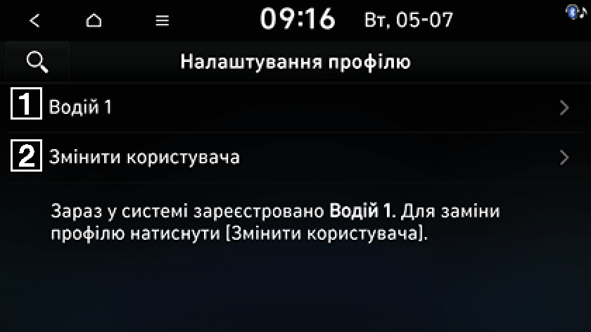 Видалити профіль Driver1, Driver2, Guest: видалення поточного профілю водія.