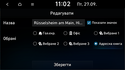 Зберегти місцезнаходження: зберегти це місцезнаходження у Адресна книга. Виконується перехід на екран редагування адресної книги.