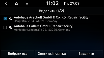 Ви можете вказувати сервісні центри Hyundai в якості місця призначення. Окремі елементи на зображеннях можуть відрізнятися від фактичних екранів залежно від моделі, опції та країни.