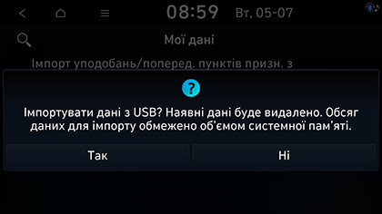 Кількість даних, доступних для імпорту з пристрою USB, обмежується кількістю елементів, яку підтримує навігаційна система.
