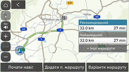 Виберіть бажаний маршрут і натисніть Почати навіг.. Ведення по маршруту запускається з урахуванням параметрів маршруту.