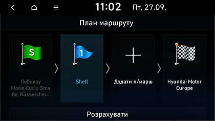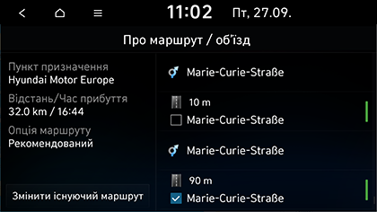 Ви можете змінювати параметри маршруту відповідно до своїх потреб. Переконайтеся, що система підключена до мережі. Варіанти маршруту доступні лише за наявності встановленого місця призначення.