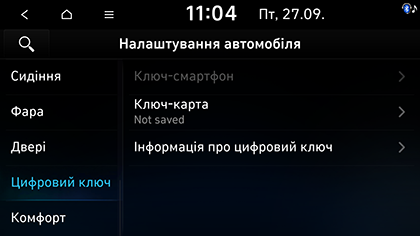 1. Натисніть SETUP > Автомобіль > Цифровий ключ.